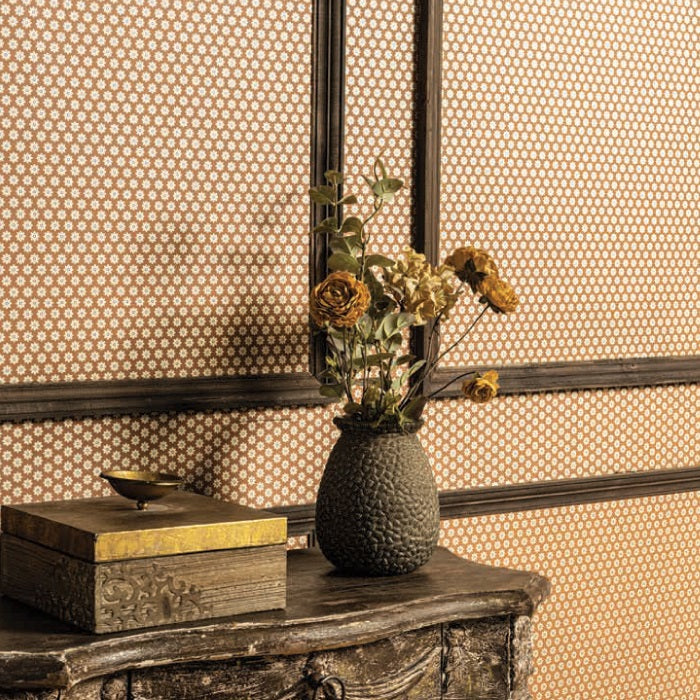 Brown Base Golden Color Ikat Design Wallpaper