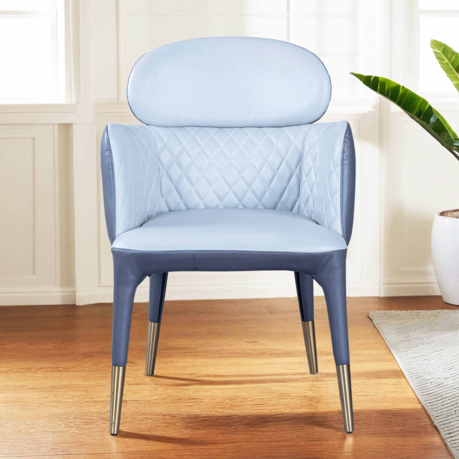 Upgrade your dining space with this sleek dining chair. Crafted with high-grade polyurethane for a luxurious and durable finish, paired with sturdy metal legs for a modern touch. Measuring 23" W x 25" D x 34" H, this chair combines comfort and style, making it a perfect addition to any dining area.